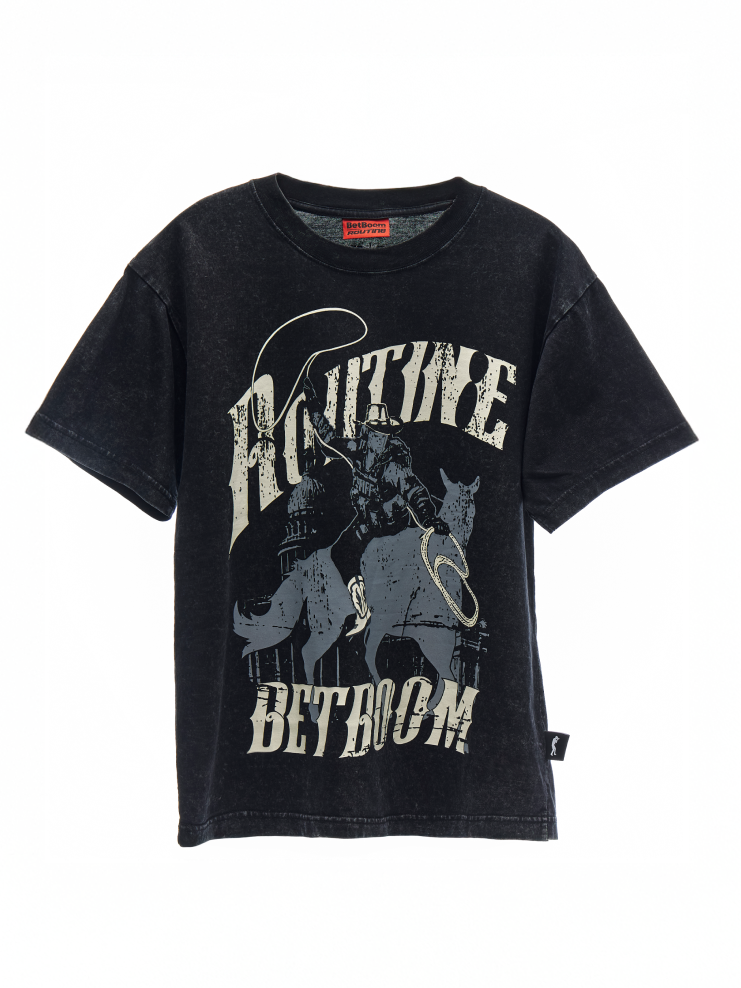 Коллаборация BetBoom и Routine, посвящённая BLAST Austin Major 2025. Футболка с варёным эффектом, вдохновлённая отсылками к CS и Техасом.