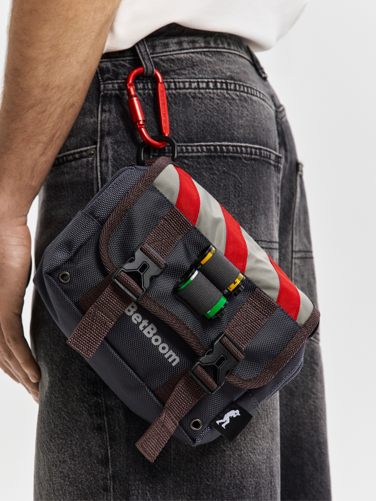 Коллаборация BetBoom и Routine, посвящённая BLAST Austin Major 2025. Сумка вдохновлена легендарным «дефьюз китом» из CS. Многофункциональный аксессуар на каждый день. Сумка можно разделить два айтема: чтобы носить на поясе или через плечо. Логотипы имеют светоотражающий эффект, мелкие ремешки на одной из сумок несут декоративную функцию, но в них очень удобно носить катушки плёнки